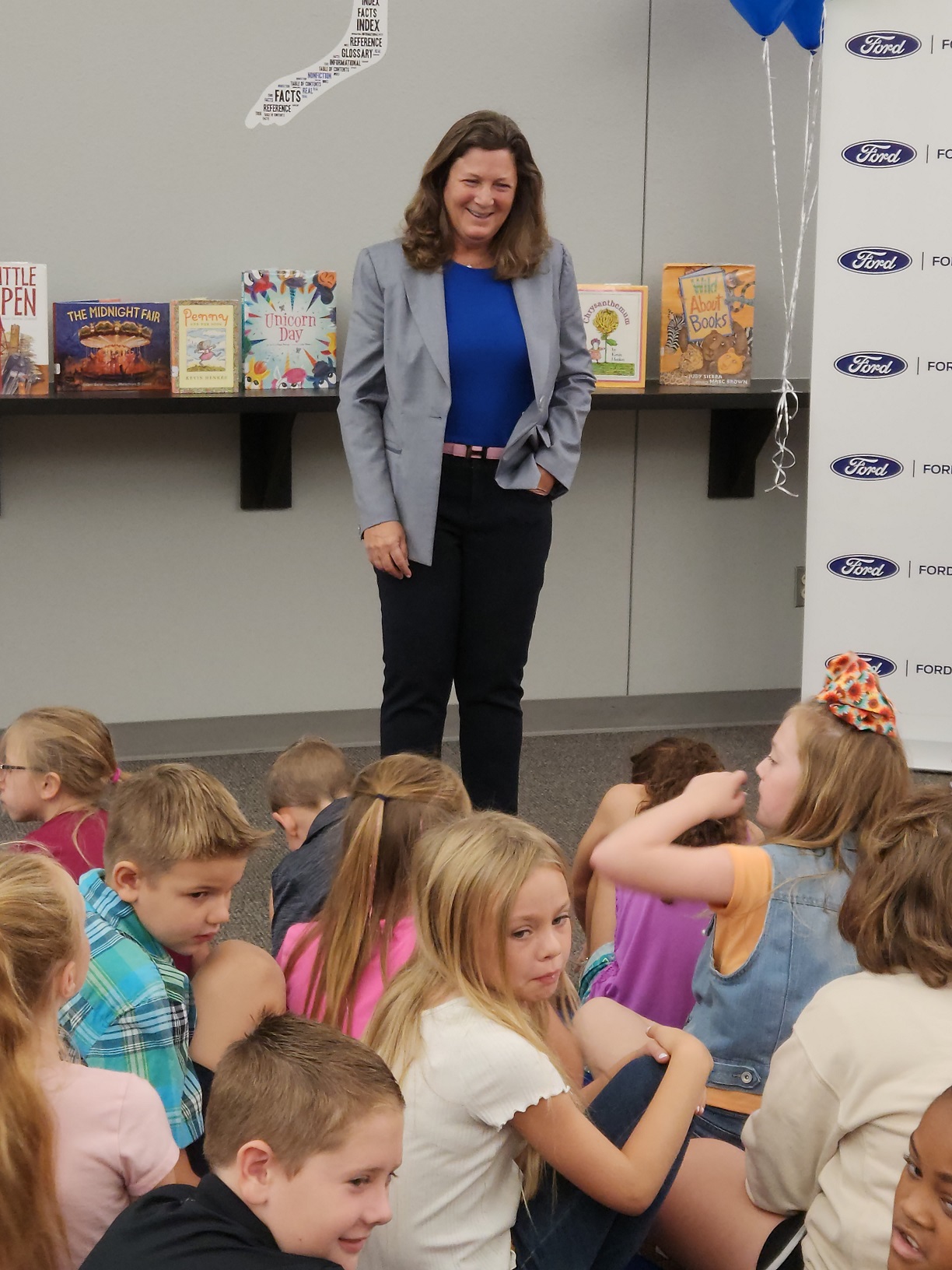 Elena Ford, la Directora de Experiencia del Cliente de Ford Motor Company, el Fondo Ford y los concesionarios Ford del Norte de Texas que trabajan con la organización sin fines de lucro First Book organizaron un evento en la escuela primaria David Crockett en Weatherford para aumentar el acceso a los libros, impulsar las oportunidades de alfabetización y fomentar la educación STEAM para los niños en comunidades desatendidas.