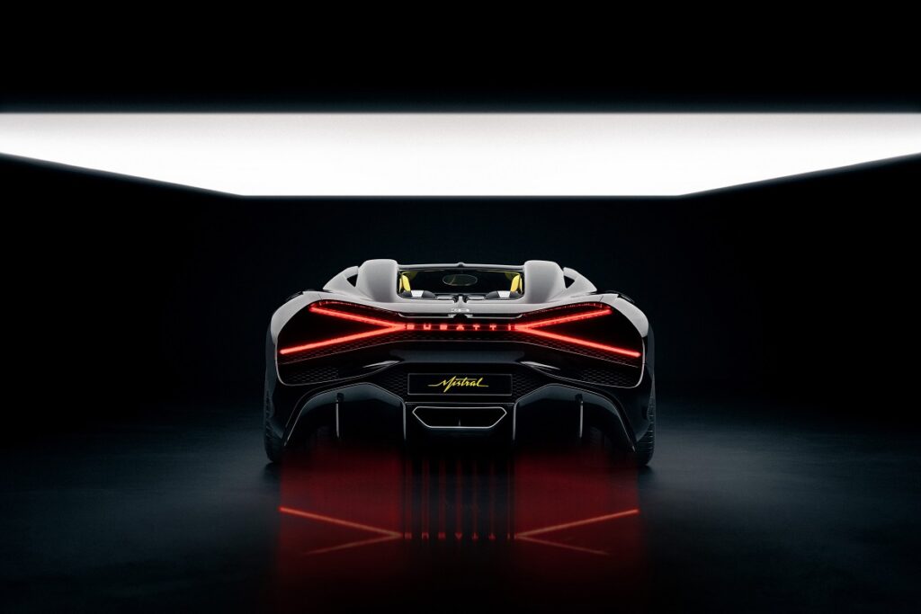 Además, en exhibición dentro de la sala de exhibición de Bugatti UAE, operada por Al Habtoor Motors, la presencia de W16 Mistral en Dubái subraya la importancia de la región. Al Habtoor Motors ha mantenido y vendido estos autos en nombre de Bugatti desde 2006, y recibió el estatus de Bugatti Service Partner of Excellence en 2013.