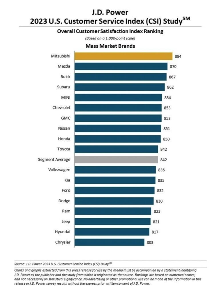 La clasificación más alta de Mitsubishi Motors en el estudio CSI de EE. UU. de 2023 es la realización de un esfuerzo de varios años centrado en mejorar sus operaciones corporativas y minoristas para abarcar todos los puntos de contacto de la relación del cliente con su vehículo, así como las experiencias de compra, compra y servicio.