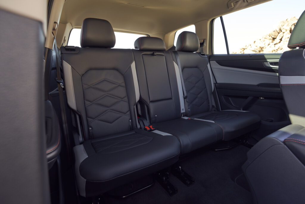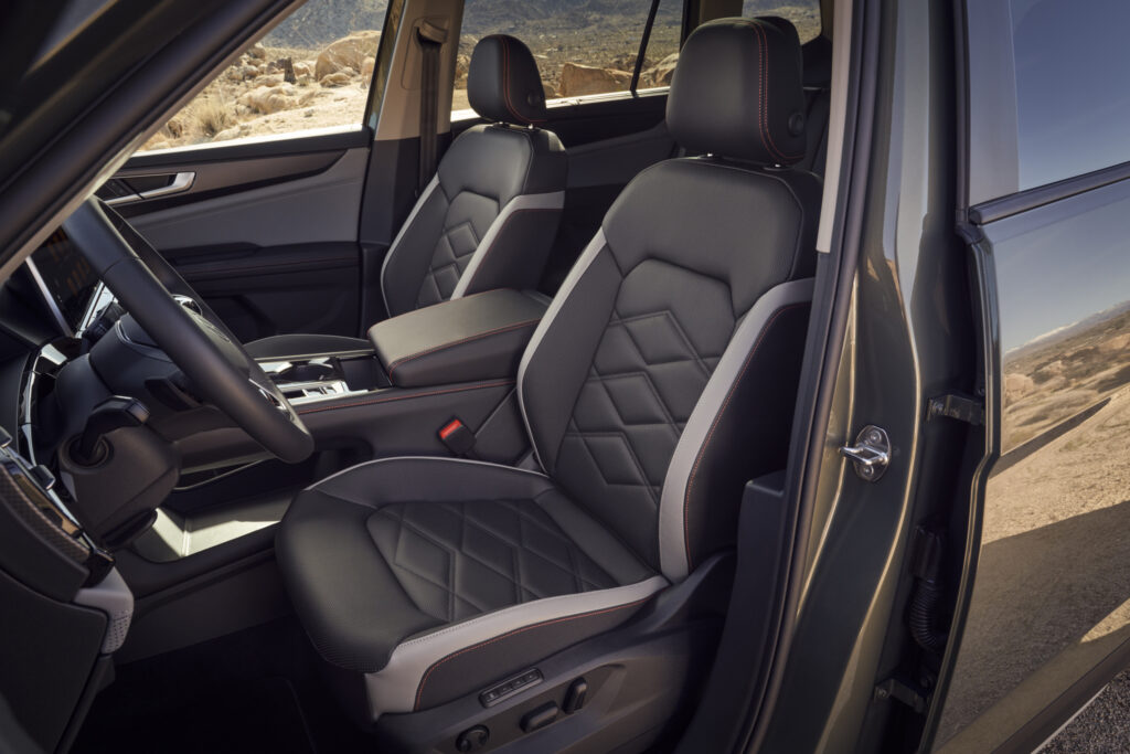 Las llantas de aleación negras de dieciocho pulgadas equipadas con neumáticos todoterreno 255/60 refuerzan la versatilidad del Atlas, mientras que los resistentes faldones laterales en negro y plateado refuerzan visualmente el aspecto.