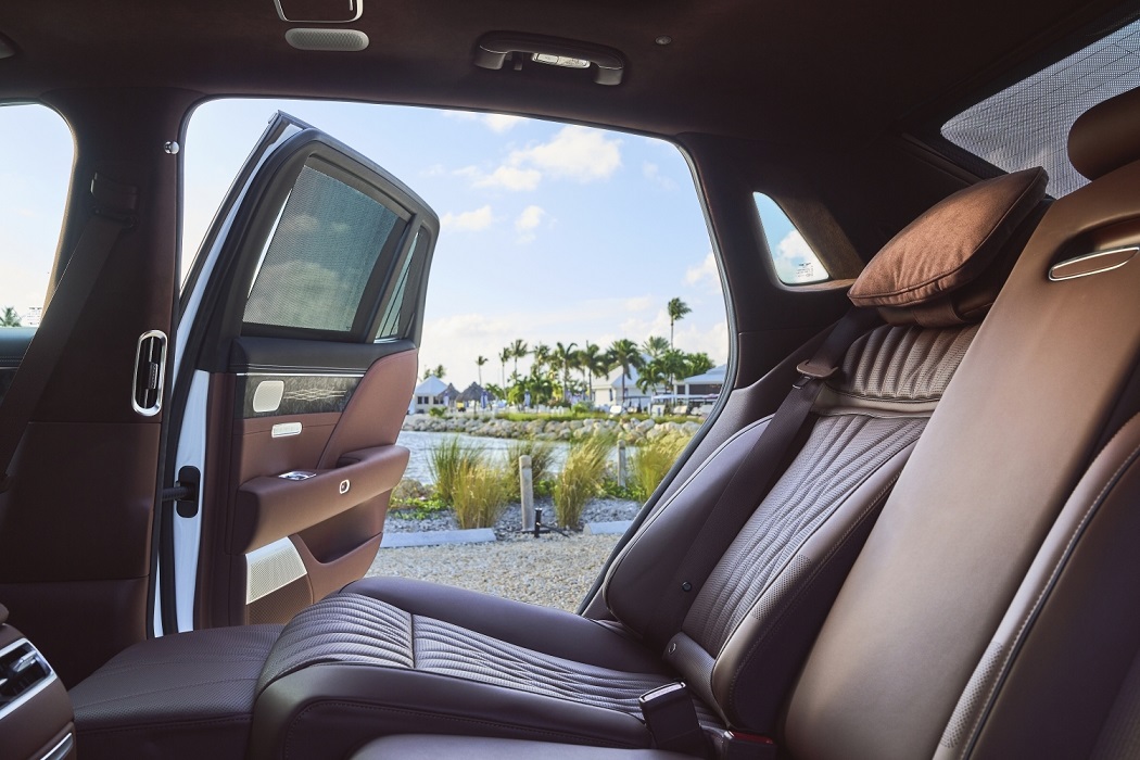 Viene con tapicería de cuero, climatizador automático de tres zonas, asientos delanteros calefactables y ventilados, un asiento del conductor con regulación eléctrica de 22 vías, funciones de memoria para los asientos delanteros, un volante inclinable y telescópico y con calefacción, un acabado interior de madera, una iluminación ambiental interior regulable, teléfono Bluetooth y audio.