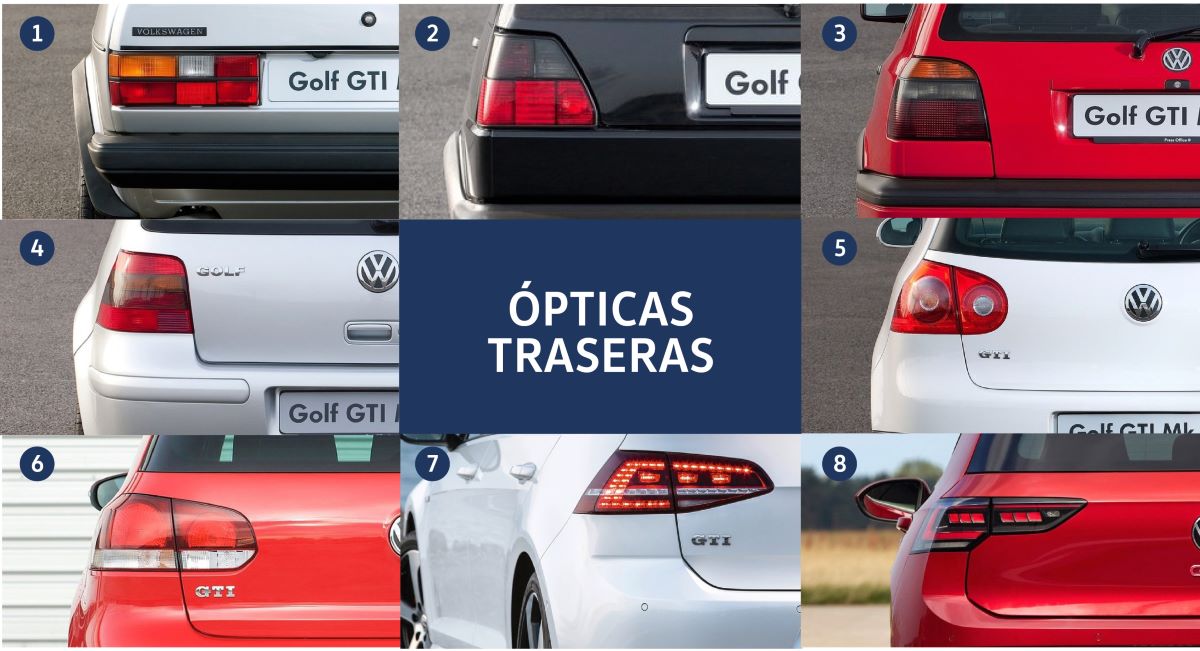 El Golf siempre ha sido igual de reconocible en su vista trasera, por los volúmenes que el Pilar C contribuye a marcar y por unos grupos ópticos con mucha personalidad. En su primera generación anticipó la que iba a ser la posterior evolución de las ópticas traseras, con una versión muy compacta y otra más extendida.