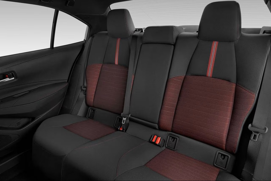 La segunda fila ofrece espacio competitivo para piernas y cabeza, acomodando cómodamente adultos hasta 6’0″ de estatura en viajes largos, con asientos plegables 60/40 que liberan acceso al maletero. Los detalles incluyen ductos de ventilación, portavasos plegables, bolsillos en respaldos delanteros y anclajes LATCH para dos sillas infantiles.