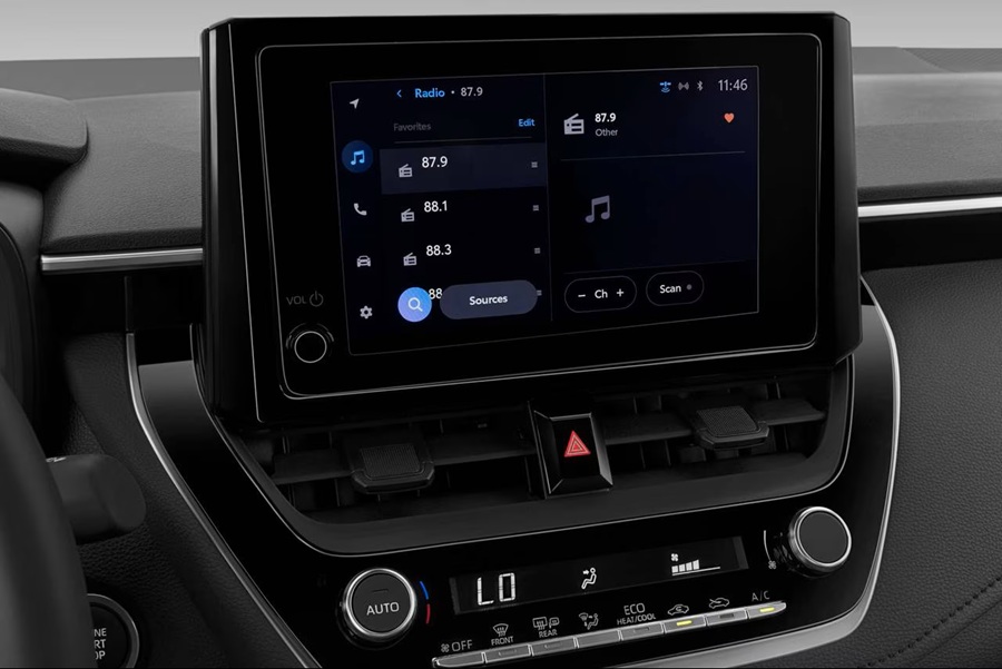 El Toyota Corolla SE del 2026 presenta pantalla táctil de info-entretenimiento de 8 pulgadas de serie, complementada por instrumentación analógica tradicional con pantalla TFT de 4.2 pulgadas integrada.